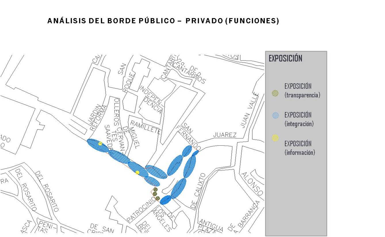 b) Intercambio: por su situación, el Borde público-privado es el nexo de interrelación entre las actividades desarrolladas en el interior de los edificios y las que tienen lugar en el espacio público. En función de su configuración, podrá ser desde una frontera opaca a una zona de intercambio.