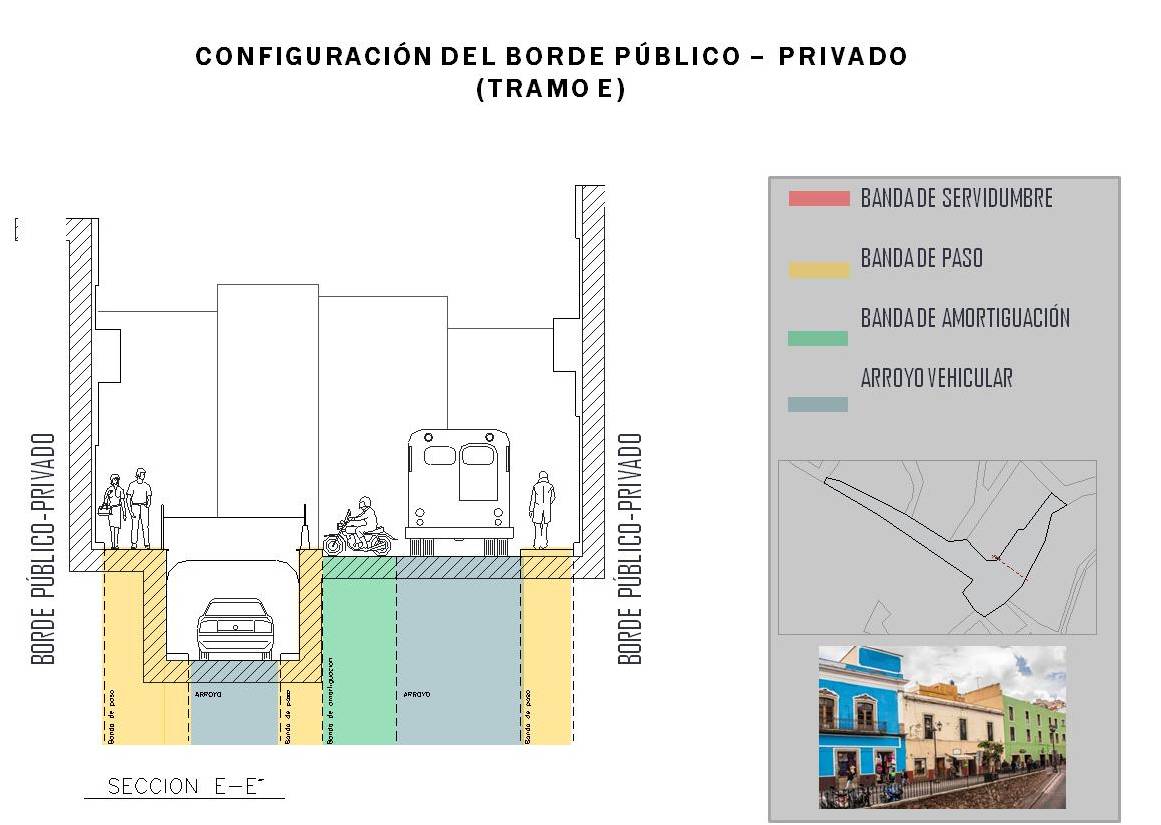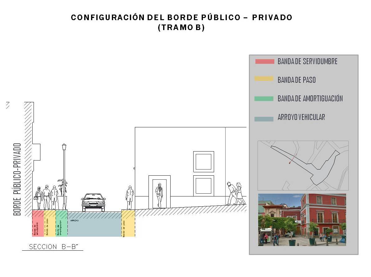 En su configuración física, el Borde público-privado puede entenderse como el espacio de transición entre el volumen construido y el no construido, conformado por los siguientes elementos compositivos: