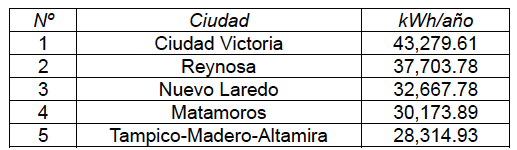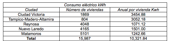 En Tamaulipas, 90% del territorio tiene clima seco o cálido húmedo, por lo que se requiere acondicionamiento ambiental en los hogares. En consecuencia existe una considerable demanda de consumo energético por los usuarios, para este estudio se toman en cuenta los consumos de energía eléctrica, que incluyen iluminación y electrodomésticos, y se determinan mediante los datos estadísticos proporcionados por la Comisión Federal de Electricidad (cfe).