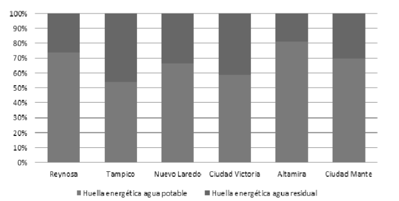 Considerando la estimación de la huella energética generada por el abastecimiento de agua potable y residual a las viviendas, se puede apreciar que el de ciudad de Altamira genera la mayor respecto a otras ciudades, a pesar de que su población es la segunda menor de las ciudades analizadas, al ser su sistema de abastecimiento deficiente para el suministro a las viviendas (imagen 4), siendo un factor a considerar en las estrategias de corrección para esta ciudad en particular.