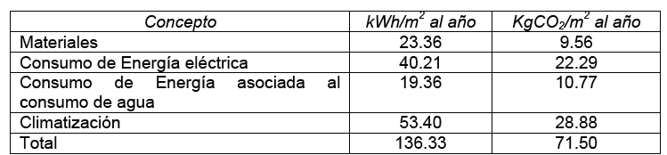 El estudio efectuado en las viviendas construidas en Tamaulipas demostró que el consumo energético es de 136.33 kWh/m2 al año y sus emisiones de 71.50 CO2/m2 al año, considerando todos los factores que intervienen desde su construcción hasta su puesta en servicio; los detalles específicos en cada etapa están descritos en el cuadro 4.