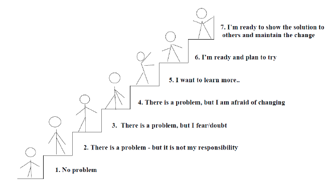 In conclusion, the aim of behaviour change is to lead and support people on their behaviour development in order to reach the highest stage of behaviour change (Figure 1 ) Moreover, knowing the stage of people regarding the issue is the key to design the most suitable communication strategy and interventions (UNICEF, 1999).