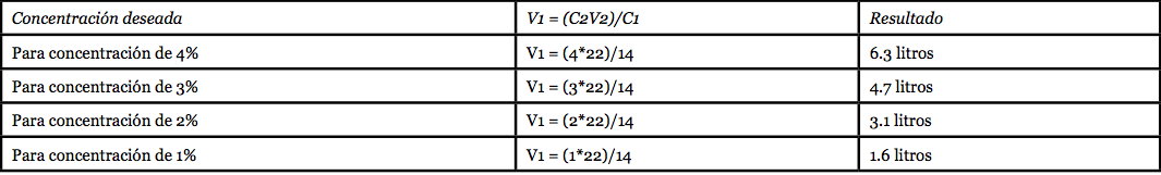 Para preparar las soluciones necesarias se utiliza la fórmula: