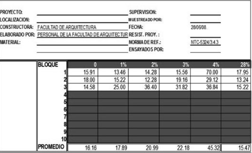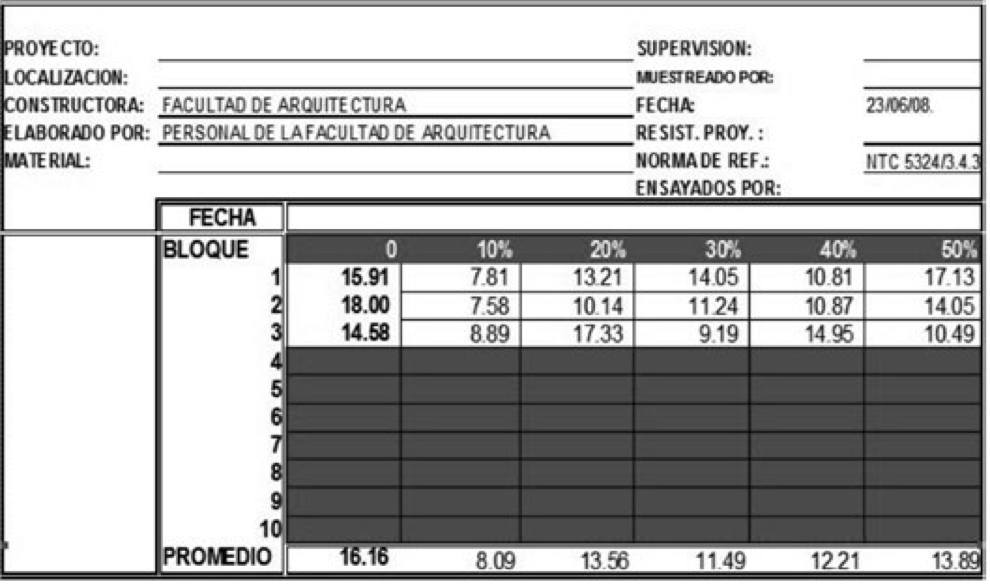 La propuesta de 10 bloques para experimentación se sustenta en los trabajos publicados por Roux (2002), McHenry (1996) y Minke (2001), que utilizaron esa cantidad de bloques asegurando así una desviación estándar de décimas, y para los estudios y pruebas se toman como fundamento el trabajo efectuado por Torres, A., Martínez. M. et al. (2005) del concreto adicionado con savias vegetales.
