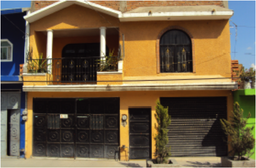 c. Transformación Espacial y de Uso: todas las viviendas de este tipo se encontraban en una etapa de consolidación-transformación. El 75% de las muestras se encuentran en expansión con materiales permanentes y acabado tradicional con pintura; mientras que el 25% se encuentran consolidadas bajo este esquema de comercio al frente y habitacional en la parte posterior sin contemplar su posible ampliación a segundo nivel a partir de una escalera o un espacio para ella.