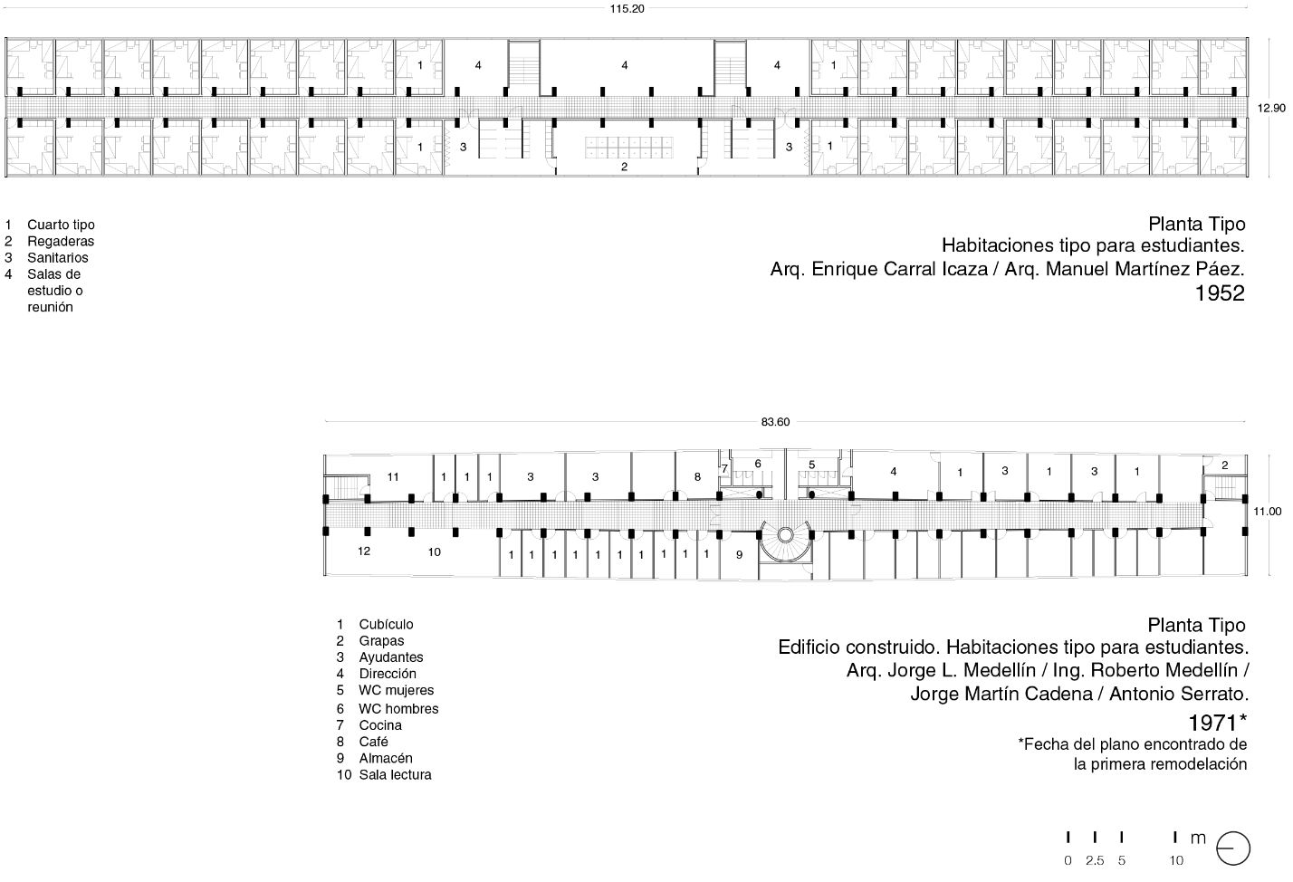 Fuente: (Pani, 1952: 216).En la revisión del Archivo de Arquitectos Mexicanos (AAM), Fondo Augusto H. Álvarez (AHA) de la Facultad de Arquitectura de la UNAM, se encontró bajo el título: Proyecto de habitaciones de estudiantes de CU, 37 documentos preliminares de dicho proyecto. Esta documentación confirmó además la colaboración de Augusto H. Álvarez junto con Enrique Carral Icaza y Manuel Martínez Páez.