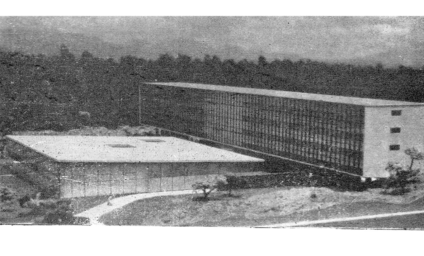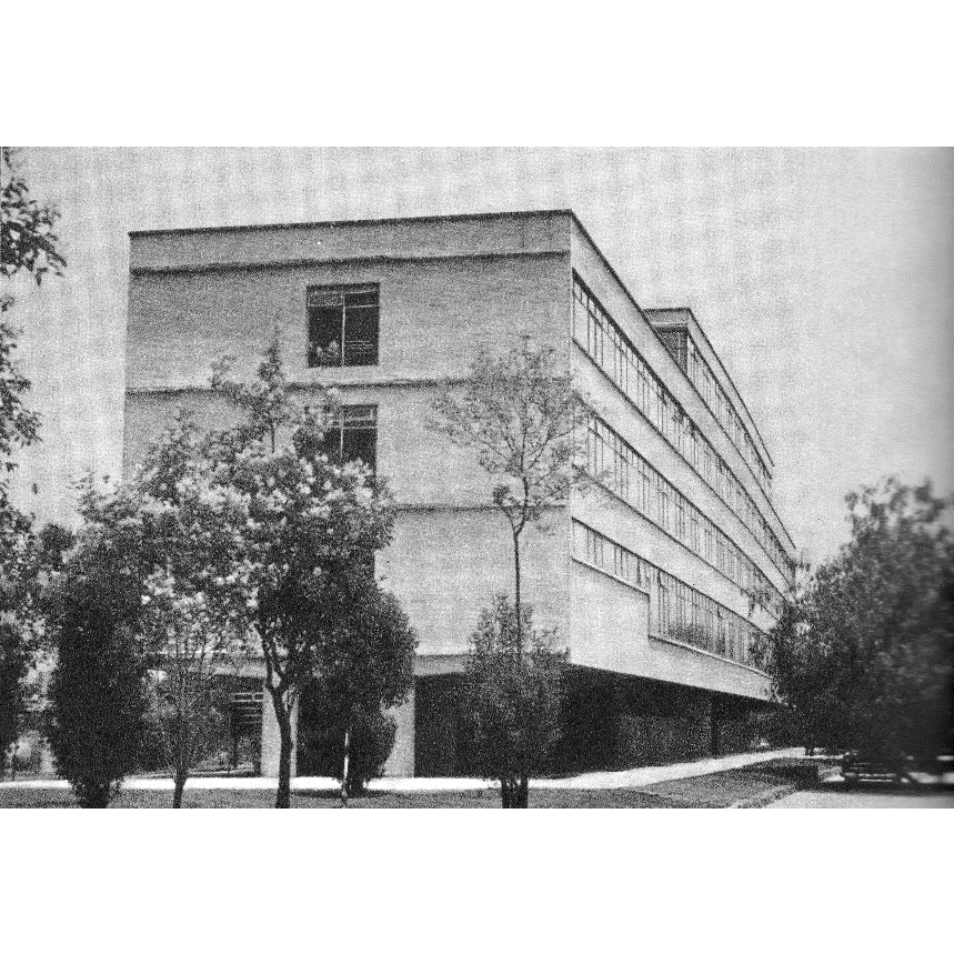 Figura 9. Fotografía de la Unidad de habitaciones para estudiantes transformada en oficinas administrativas, ca. 1965. Se acusa la modificación de la planta baja y la eliminación de la idea de planta libre y pilotis.