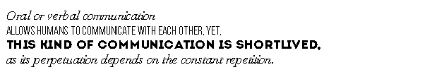By living in a community, humans soon felt the need to communicate. The history of human evolution is also the evolution of their forms of communication. Oral or verbal communication allows humans to communicate with each other, yet, this kind of communication is short-lived, as its perpetuation depends on the constant repetition. When the context of communication or medium changes, the receptor has a message which is delivered differently. This can change the way it is perceived (Berger, 1995) due to the social and cultural environment and also due to the education and life experience of individuals (Mitchel, 2005).