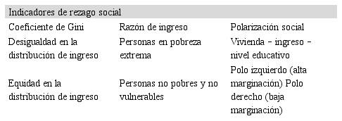 Las desventajas ocasionadas por la marginación son acumulables, configurando escenarios cada vez más desfavorables. Mientras que la medición del rezago social incorpora indicadores que ayudan a conocer el nivel de desigualdad económica y social de la población; a través de variables de educación, de acceso a servicios de salud, de servicios básicos en la vivienda, de calidad y espacios en la misma, y de activos en el hogar (Feres, Mancero, 2001).