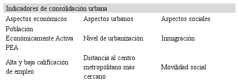 Las variables que integran la consolidación urbana (Suárez 2012) son: