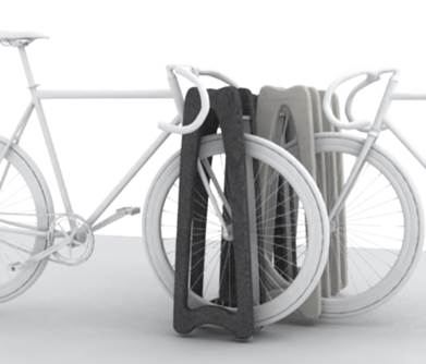 Fuente: Elaboración propia.La propuesta incluye el desarrollo de un rack para bicicletas (figura 5), que podrán ser implementadas en espacios públicos o privados. El diseño y la simplicidad de las formas en cada componente, hace que las modulaciones sean diversas e interesantes esperando lograr en el usuario una experiencia diferente, la cual genera establecer un vínculo entre el usuario y el objeto, por el aspecto formal relacionada a la naturaleza, así como a la sencillez en su funcionalidad. Las propuestas activan el uso de espacios públicos y dan un sentido de pertenencia e identidad. El material propuesto es “Monolite Ipergres”, parte clave de la vinculación y patentado por Laboratorio Pesaro como un material cerámico sustentable, que gracias a la mezcla de sus componentes y tecnología aseguran calidad y alta resistencia a exteriores, el cual cuenta con una utilización más tradicional como sería en bajillas, jarrones, artículos de decoración, entre otros. Lo que presentaba un reto para este proyecto debido a la tipología del producto, ya que los referentes a la aplicación de este tipo de material con que se contaba en el momento eran escasos.