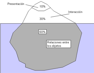 Fuente: Gómez (2014).En la figura 4 se puede ver la punta del Iceberg con un señalamiento del 10%, haciendo referencia a ese primer acercamiento de los usuarios sobre las interfaces, donde el diseño es percibido de manera visceral, para dar paso a ese segundo porcentaje con un 30%, donde los procesos de interacción son fundamentales para la percepción de satisfacción o frustración durante el uso y navegación en los ambientes digitales, esta categoría debe considerar la adaptación de las interfaces en distintos dispositivos. La parte inferior del Iceberg contiene la proporción restante del 60%, y desde luego es la más importante, ya que el diseño debe determinar las metáforas adecuadas que encajen con los modelos mentales de los usuarios y las relaciones entre las mismas que podrán ir dando más estructura en la arquitectura de información. Todo este trabajo es el que menos perciben los usuarios, ya que se trabaja de una manera más profunda sobre la lógica del diseño y la programación.