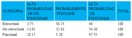 En conclusión, siendo la vulnerabilidad de un edificio un parámetro que da cuenta de la amenaza respecto a la calidad de prestación de salud que se da en el mismo; y la funcionalidad el parámetro que mide el cumplimiento de los diagramas de flujo al interior de un establecimiento de salud; se tiene que la vulnerabilidad funcional de un establecimiento de salud se constituye en el parámetro para medir la operatividad de una edificación siempre y cuando no ponga en riesgo la calidad de atención de salud, el bienestar de quienes allí trabajan, llámense médicos, enfermeras, personal técnico y administrativo, o de quienes asisten en condición de pacientes o visitantes.