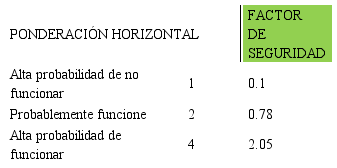 Índice de inseguridad = 1 - s = (Extremo horizontal superior – Factor seguridad)/ Rango = 0.36