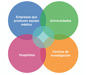 Fuente: Elaboración propia.Cuando hablamos de Innovación y Desarrollo es importante mencionar el rol de la Universidad, que se ha convertido en elemento estratégico. Existe una tendencia hacia la “tercera misión” de la Universidad, el involucramiento en el desarrollo socioeconómico, además de las labores académicas de enseñanza e investigación (Etzkowitz, 2003). La capacidad de las Universidades para generar tecnología ha cambiado su posición de una fuente tradicional de recursos humanos a una fuente de generación y transferencia de tecnología. En este artículo se presenta un caso de estudio dentro del área de desarrollo de innovación tecnológica médica en donde la Universidad juega un papel importante, en este caso la Universidad Nacional Autónoma de México (UNAM).