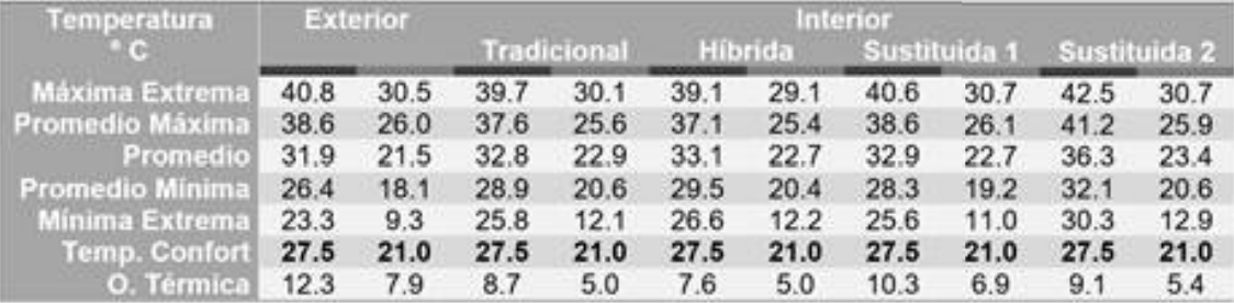 Según los datos registrados en la comunidad de La Subida se puede señalar que el comportamiento térmico de los prototipos en esta localidad depende en primer término del clima cálido prevaleciente en la zona, además de la actuación térmica de los insumos tradicionales e industrializados: a manera de conclusión se puede señalar que para la temporada cálida la VS1 vivienda sustituida 1 es la de más bajo comportamiento térmico en relación con la climatología externa, mientras que en la temporada fría la VS1 vivienda sustituida 1 tiene un mejor desempeño.