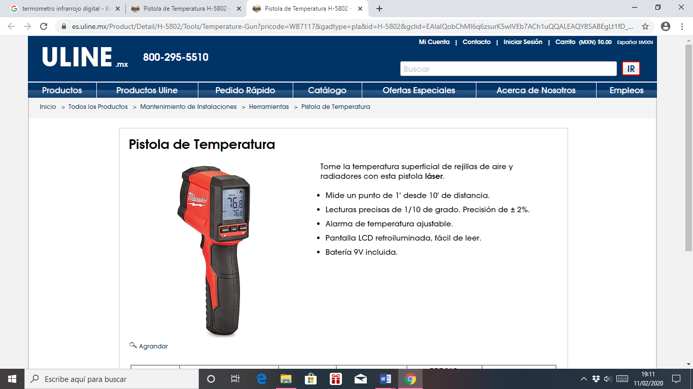 Figura 1. Termómetro infrarrojo digital.