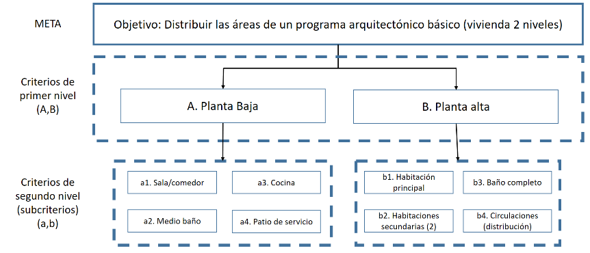 El AHP es parte de las técnicas para la toma de decisión multicriterio (Multicriteria Decision-making o mcdm), la cual autores como Aragonés et al., (2014) señalan que es parte de las técnicas desarrolladas para ayudar a los tomadores de decisiones a orientar la elección de decisiones en problemas complejos de manera sistemática y ordenada, por lo que al emplear este tipo de técnica para desarrollar un partido arquitectónico particular permitirá identificar de manera cuantitativa la manera en la que los decisores dimensionan los espacios basados en su conocimiento, expectativas y necesidades.