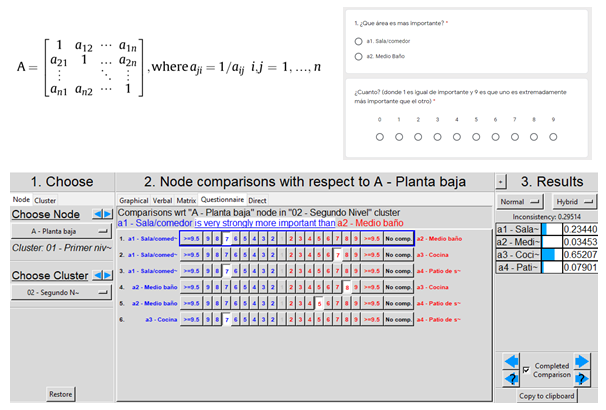 El proceso de decisión o elección en etapas tempranas del diseño es una temática muy compleja al presentar al individuo la necesidad de procesar elementos intangibles y traducirlos a una expresión material. Mu & Pereyra-Rojas (2017) señalan que si bien se da por hecho que los individuos son capaces de procesar de manera racional la información y que en muchos casos pretenden tomar decisiones que los lleven a maximizar los beneficios de sus decisiones, estos pueden ser fácilmente influenciados por sus prejuicios cognitivos, la manera de ordenar la información, o el desconocimiento de procesos de sistematización y análisis de los datos; por lo cual se propone emplear una metodología que permita identificar de manera numérica las observaciones realizadas por cada uno de los individuos y analizar cuáles son las posibles influencias que modifican las posturas de los mismos, por ello se propone aplicar una metodología cuantitativa de análisis espacial en un caso específico, siendo la elegida, en este caso, el proceso de análisis jerárquico (AHP, por sus siglas en inglés).
