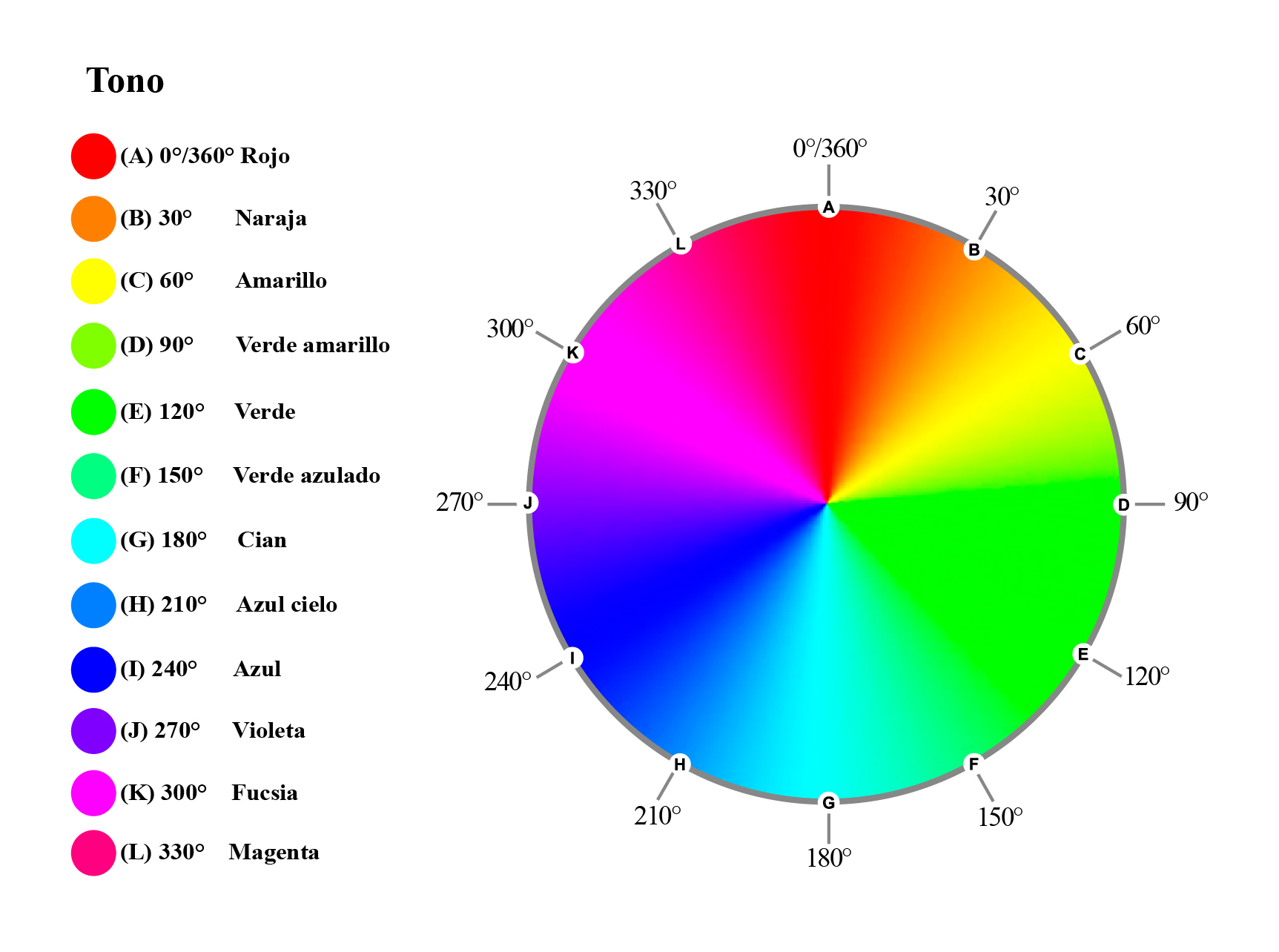 1.1 Tono. Se refiere al nombre con el que se le llama al color, rojo, verde, azul, etc. (figura 1).