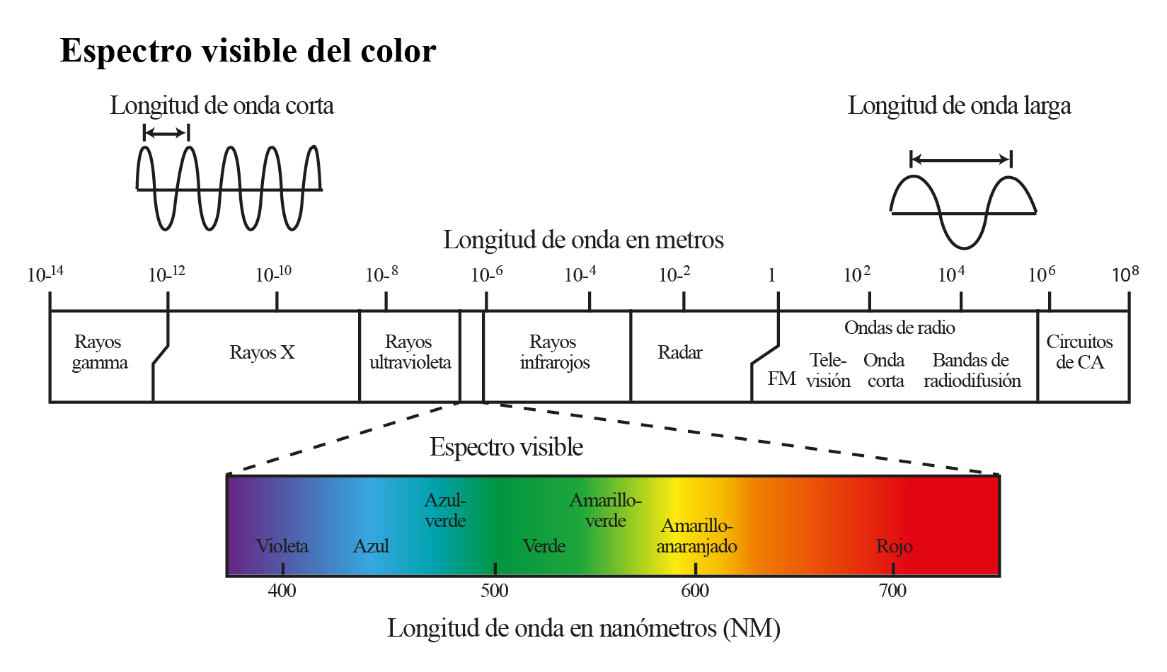 2. TIPOS DE COLOR. más allá de sus cualidades de percepción se clasifican mediante ellas mismas trabajando sus propiedades en conjunto para poder clasificarlas en tonalidades que al seleccionar un color de círculo cromático y alterando el valor o brillo y la saturación se pueden conseguir tonalidades claras, saturadas, agrisadas u oscuras, por su parte, las temperaturas de color es un concepto que se deriva directamente de la física más preciso de la óptica. Su nombre se le da al hecho de que el color tiene una frecuencia y una longitud de onda, como lo explica la figura 4, entre más alta o larga el color es más cálido por lo que también son llamados colores activos, por el contrario, los colores fríos tienen una longitud de onda más corta o baja son más fríos, por lo que los llaman también colores pasivos.