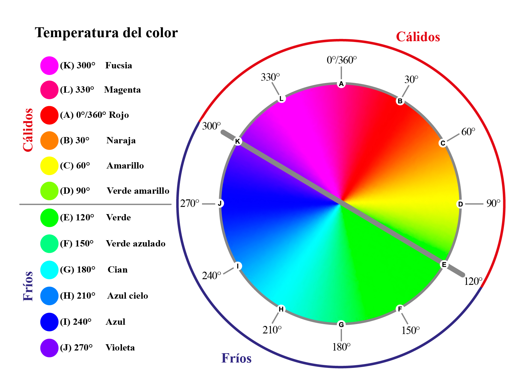 2.2 Temperatura del color. Como se describió la temperatura de color se divide según el círculo cromático en cálidos o activos y fríos o pasivos (figura 6).