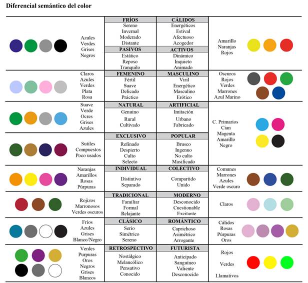 3.1 Semántica del color. Para hacer la descripción de la semántica de color se debe trabajar en el detalle de la expresión lingüística de cada uno. La figura 7 presenta una adaptación del diferencial semántico del color de Berry y Martin (1994) en el que se visualiza una descripción del color y su significado.