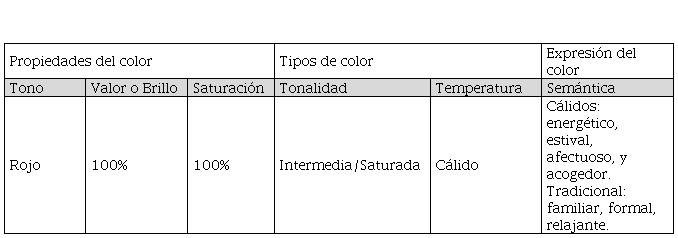 En este sentido, para fines narrativos se presenta una propuesta de un instrumento descriptivo de color en el que se conjuntan sus condiciones para una argumentación de selección y aplicación. Por su parte y de forma concreta, Rodríguez describe cómo podría argumentarse el uso del color para su implementación en la publicidad: “El color: importante la tonalidad, la saturación y la temperatura, sin olvidar en ningún momento toda la simbología asociada a los colores (negro-muerte, angustia, noche)” (2008: 12).