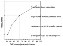 El 78.22% de los estudiantes consideró, por experiencia propia o por opiniones de terceros, que las causas que subyacían a la solicitud de baja de materias, en orden de importancia, se debía a la incomprensión de las explicaciones dadas por los profesores para realizar tareas, seguido de no contar con un servicio de internet eficiente o el equipo de cómputo necesario. Finalmente, el 94.20% de los estudiantes prefiere las clases presenciales contra un 5.80% que se inclinó más por la vía remota.