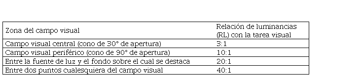 En general, cuando se hace referencia a niveles de iluminación recomendados para el desempeño de cualquier tarea, las normas, tanto nacionales como internacionales, toman como índice principal la especificación de valores mínimos necesarios de iluminancia (Pattini, 2005; IESNA, 2000; IRAM, 1996).