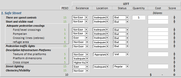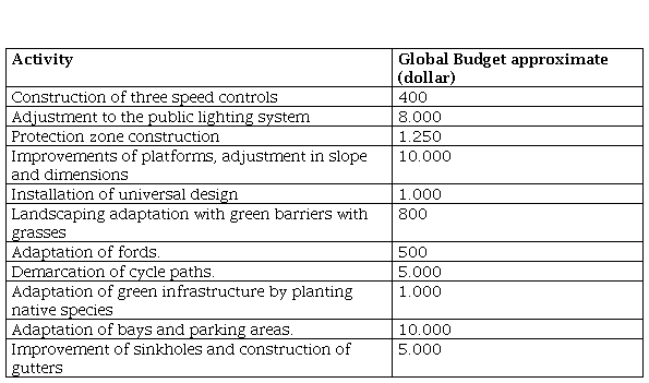 If the municipality does not have all the resources, it can evaluate the option, for example, of adapting only the area for maneuvering public transport, reducing this item from US$10,000 to US$5,000, reaching a rating of 69.1%, remaining in the range of acceptable compliance. In this way, the administrative teller can use this tool to assess the solutions that are economically adjusted to the budget available to the city (Albán Pérez, 2022).