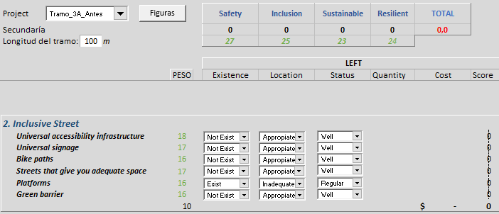 ● Cost: The user can include the associated cost of the constructive intervention required to improve the sub-attribute or the global attribute.