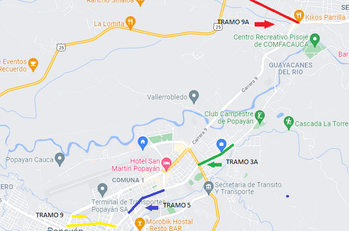 The growth of Popayan, the capital city of the Cauca department, combined with the touristic importance of this municipality in western Colombia, led to the modernization of roads and the enhancement of public spaces on 1n Street between 8th and 11th Avenues (Sections 9, 9A, 3A, and 5, as shown in figure 3). The weighted sum method was employed to support decision-making related to the projects aimed at enhancing the overall conditions of the street in the areas that required intervention.