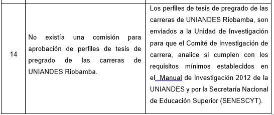 Los Comités de Investigación de Carrera, se encuentran cumpliendo con el objetivo por el cual fueron creados. En los trabajos de perfiles de tesis de pregrado, que han sido revisados por los Comités de Investigación de Carrera, en su gran mayoría se evidencia deficiente calidad del informe científico: insuficiencias en la comunicación escrita en lo referente a la redacción, sintaxis y coherencia, poca riqueza de vocabulario e incorrecta descripción de citas bibliográficas en el marco teórico.
