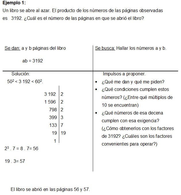Cada estrategia se caracterizó, se ejemplificó y se propusieron impulsos a formular en caso de observar dificultades en los estudiantes para resolver los problemas planteados. Estos impulsos (preguntas, sugerencias) son lo más general posible debido a las características de los alumnos que reciben el entrenamiento, éstos deben realizarse fundamentalmente en la primera etapa del mismo, hasta lograr que los alumnos los trabajen independiente. Se selecciona la primera estrategia como ejemplo para ilustrar el trabajo realizado.