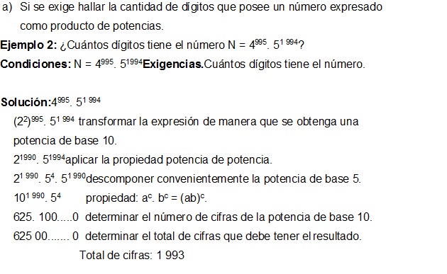 ¿Cómo determinar en las potencias dadas la cantidad de dígitos de cada una?