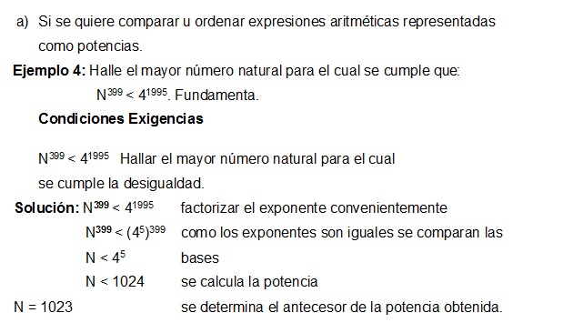 d) Comparar u ordenar expresiones aritméticas expresadas como potencias.