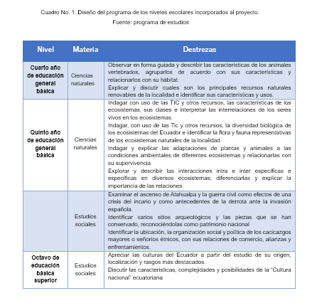 Con el desarrollo de este trabajo se fortaleció la incorporación en el componente educativo de la escuela el turismo comunitario dirigido a la educación ambiental desarrollando una metodología lograda a partir de actividades educativas en la comunidad de Cantón Santiago de Píllaro que se ubica al noreste de la provincia Tungurahua, Ecuador. Cumpliendo con los siguientes aspectos: