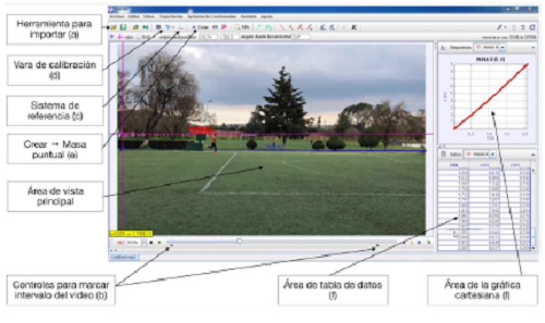 Para el desarrollo de la investigación se utilizó la Ingeniería Didáctica (Artigue, 2017). Este modelo teórico permite establecer, organizar y articular un conjunto de situaciones para el trabajo en clase por un profesor que se asume diseñador o ingeniero, el cual se apoya del conocimiento de su dominio y además toma decisiones sobre las diversas componentes del proceso. En su implementación, la situación evoluciona a partir de la reacción de los estudiantes, motivadas por las decisiones y elecciones del profesor plasmadas en la situación, de esta forma el estudiante construye un conocimiento matemático como proceso de adaptación a las situaciones que enfrenta. Es por esto, por lo que la ingeniería didáctica pone énfasis en la confrontación del análisis preliminar de la situación, donde se hacen predicciones sobre la actividad matemática del estudiante a partir de diversos componentes preliminares, con los resultados obtenidos de la experimentación (análisis a posteriori). La ingeniería didáctica como metodología de investigación consta de tres fases. El primero es el análisis preliminar que involucra tres componentes, el epistemológico, asociado a las características del saber en juego. El cognitivo, referida a las concepciones de los estudiantes. El didáctico, que se refiere a las características del sistema de enseñanza. La segunda fase es el diseño de la situación que se implica el estudio de la forma en que se organizará y tratará el contenido de las estrategias que deberán usar los estudiantes durante las actividades diseñadas. La tercera fase es la puesta en escena o experimentación de la situación didáctica y el análisis de los resultados. La situación plantea efectuar un análisis preliminar del movimiento de un estudiante que recorre un tramo de 30 metros sobre el costado de una cancha de fútbol, posteriormente con ayuda de la tableta electrónica los estudiantes graban la escena en video para su posterior análisis con el software Tracket el cual está instalado en la tableta. Esta investigación explora el potencial que tienen las herramientas en la tableta para el estudio de las matemáticas, las cuales posibilitan la manipulación de la diversidad semántica de los conceptos matemáticos y sus representaciones (Sanabria-Brenes, 2016), al aprovechar sus características como la interactividad de la pantalla para manipular las aplicaciones (Duijzer, Shayan, Bakker, Van der Schaaf y Abrahamson, 2017). En particular, la situación didáctica motiva la confrontación entre los planteamientos iniciales en papel y los obtenidos con el software, es decir, el recurso tecnológico tiene un rol de “medio de verificación” que permite a los estudiantes confirmar sus predicciones, aunque también, puede ayudarles a situarse y familiarizarse con el problema, establecer relaciones entre cantidades, incluso, hacer exploraciones y hasta determinar las respuestas por ensayo y error (Margolinas y Drijvers, 2015). La situación didáctica tiene dos propósitos, por una parte, ofrecer un contexto en el que se propicie la relación del movimiento físico con la gráfica, interpretar el sentido de las variables distancia - tiempo, favorecer la lectura e interpretación de gráficas como se propone en Ortega y Puig (2017) al usar la tableta electrónica para recolectar y procesar datos reales en la clase. Por otra parte, motivar la transferencia de información entre las representación numérica y gráfica de la función (Ayalon, Lerman y Watson, 2014). La situación está conformada por cuatro secuencias que se desarrollaron en cuatro sesiones de 100 minutos cada una, el trabajo se realiza en equipos de tres integrantes. La primera secuencia consiste en expresar en una gráfica el movimiento de un estudiante que corre de forma constante una distancia de 30 metros. El profesor les proporciona una hoja con la instrucción y antes de realizar el experimento, los alumnos deben reunirse a discutir y analizar la situación para trazar su gráfica en papel. Los estudiantes no tienen experiencia previa en el estudio de situaciones experimentales, por lo que se espera que afronten problemas al identificar las variables y trazar las gráficas. Una cuestión que puede representar dificultad es la interpretación del término “constante”, tanto al plantear el experimento de movimiento, como al trazar la gráfica. La siguiente parte de la actividad consiste en trasladar a los equipos a la cancha de fútbol, cada equipo es responsable de asignar y rotar las siguientes funciones, el corredor, encargado de realizar el recorrido en la cancha, el camarógrafo, encargado de grabar la escena y el relator, encargado de registrar los experimentos, responder a las preguntas y coordinar al equipo para elaborar el reporte. En este punto, el profesor les recomienda a los estudiantes repetir varias veces el experimento y elegir la mejor escena de movimiento para realizar su análisis. Después de realizar el trabajo experimental, el profesor pide a los equipos regresar al aula para organizar una breve discusión sobre la experimentación, utiliza algunas de las grabaciones para analizar las características del experimento para hacer explícitos algunos elementos que serán relevantes en las siguientes situaciones, por ejemplo, el tiempo total del experimento, la distancia recorrida, el punto de origen, el punto final, el movimiento a una velocidad constante. Enseguida los equipos se reúnen para trabajar con el software Tracker. Para realizar el análisis realizan los siguientes pasos. Importar el video a Tracker (a), enseguida ajustar la escena que se desea analizar utilizando el control de intervalo (b). Se define el sistema de referencia (eje cartesiano) para ubicar el origen (c). Se define la vara de calibración (distancia conocida dentro del video) para indicar al software la conversión de pixeles a unidades de longitud (d). Para iniciar el análisis se agrega un