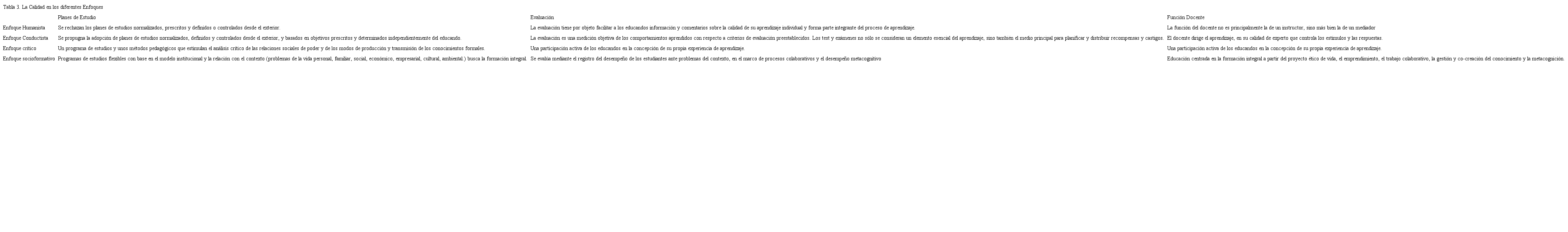 A más de una década del análisis de esos enfoques de la calidad, resulta imperante incorporar el enfoque de la socioformación (Ver tabla 3), considerando su indisoluble relación con la sociedad del conocimiento, caracterizada por los vertiginosos cambios tecnológicos, económicos y sociales que se viven actualmente. La socioformación es parte de la sociedad del conocimiento, concebida como un conjunto de comunidades que trabajan de manera colaborativa con apoyo en las Tecnologías de la Información y la Comunicación (TIC) para resolver problemas con valores universales (Tobón, González, Nambo & Vázquez, 2015).