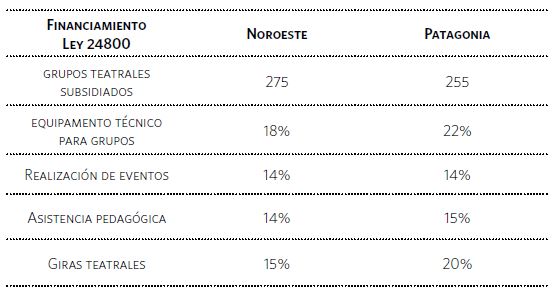 En esta etapa, los modos de producción de las regiones Noroeste y Patagonia muestran distinciones operativas y estructurales, aunque también se registran determinados regímenes de “solidaridad organizacional” entre estas fronteras intranacionales. Por razones de economía argumentativa, en este ensayo solo se mencionan algunos componentes centrales de esta interrelación, los que fundamentan la periodización dialógica establecida. A saber: a) en la primera subfase (1983-1998), los agentes y formaciones teatrales de las localidades y redes que componen las regiones de la Patagonia y el Noroeste presentan procesos análogos de reconfiguración sociocultural, entre otros, la imperiosa necesidad de recomponer las fuerzas productivas —grupos, instituciones, medios y modos de gestión, repertorios poéticos— provenientes de las prácticas del Movimiento de Teatro Independiente según sus respectivas asimilaciones y relocalizaciones, un proceso que había sido obturado durante la última dictadura militar. Así, las zonas delimitadas —a pesar de la ausencia de contigüidad o vecindad geográfica— responden a programas culturales y estéticos que dialogan entre sí, por ejemplo, la creación de centros de formación académica para actores, docentes y directores, ya sea en ámbitos municipales, provinciales o universitarios. Además, existe un interés específico y compartido por resignificar las poéticas objetivistas o subjetivistas de raíz europea —el brechtianismo, el docudrama u otras orientaciones del realismo, o los procedimientos expresionistas y simbolistas— e indagar en poéticas que abordan tematologías basadas en sus respectivas culturas populares, con énfasis en las lecturas e interpretaciones de la “creación colectiva” colombiana o en las dinámicas de trabajo propuestas por la antropología teatral, esto último para resemantizar los entrenamientos actorales, las estructuras mítico-regionales o los relatos testimoniales sobre lo acaecido en los años ominosos. Es un periodo en el que se cuestionan los mecanismos de legitimación heredados de las prácticas centralizadas, vale decir, se litiga la nacionalización o, mejor, la “porteñización” de lo provincial, entendido como un símil de la “internacionalización de lo capitalino”. Entonces, este modo de consagración dominante en la ciudad de Buenos Aires es, generalmente, utilizado como mecanismo para la homogeneización de lo diferente a través de las políticas culturales ejecutadas por el Estado nacional y, por ende, deviene en objeto de permanentes críticas y acciones de resistencia por parte de los agentes de ambas zonas. b) En la segunda subfase (1998-2008), los campos y circuitos teatrales de las regiones Patagonia y Noroeste se desarrollan en dos macrodimensiones interrelacionadas entre sí: la regionalización, socialización e institucionalización poética de diversos modelos de creación experimentados en las etapas anteriores y, a su vez, la reorganización de las fuerzas productivas estatales, asignadas mediante la Ley 24800. Entre los múltiples ejes poéticos desplegados, es oportuno destacar la cantidad de nuevos textos dramáticos y de agentes autodefinidos en la categoría profesional de “dramaturgos”, o la estimulante hibridez estética y el perfeccionamiento técnico-procedimental de las textualidades locales que, entre otras lecturas, permiten la “lugarización” de ambas territorialidades. Al mismo tiempo, en este proceso se aplica un inédito programa de federalización, a través de la división del país en seis regiones: Patagonia, Centro, Centro-Litoral, Cuyo, Noroeste y Noreste. Esta regionalización es, desde el punto de vista elegido, un paradigma político-cultural que genera múltiples efectos en las dimensiones productivo-materiales y poético-estructurales. Al poner en diálogo y relocalizar estas prácticas artísticas, los focos teatrales del norte y sur ya delimitados registran —a pesar de sus notorias diferencias y desigualdades geográficas, demográficas, económicas y socioestéticas— un programa casi idéntico de financiamiento político-escénico: por ejemplo, según estadísticas oficiales, desde 1998 y —por lo menos— hasta 2008, la distribución de los subsidios que modificó radicalmente la cantidad y sistematización de creaciones escénicas regionales se puede sintetizar en las siguientes variables: