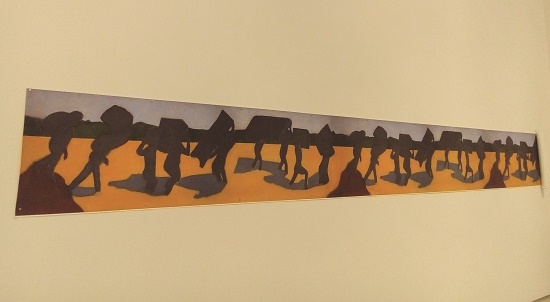 Although this may lead to the temptation to pity immigrants—a temptation against which Slavoj Žižek has recently rebelled in his book Refugees, Terror and Other Troubles with the Neighbors—, González’s painting problematizes this approach by highlighting the unparalleled human resilience that is condensed in the painting’s symbolical vindication of strength—both physical and psychological—that is at the core of the experience of migration. González’s pictorial approach to the silhouettes of migrant bodies leads to the creation of a pathos image, which Pérez Oramas has defined as a pictorial representation whose meaning is not solely based on its documentary value, but also—and mainly—on the message of human pathos that it conveys (120).