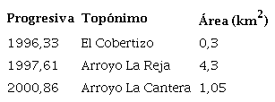 Con ayuda del Google Earth se delimitaron las cuencas de cada uno de los sitios denominados “El Cobertizo”, “Arroyo La Reja” y “Arroyo La Cantera” (Figura 2), cuyas áreas se indican en el Cuadro 2.