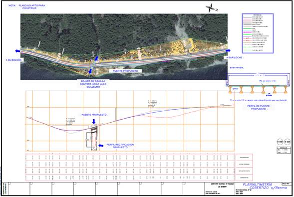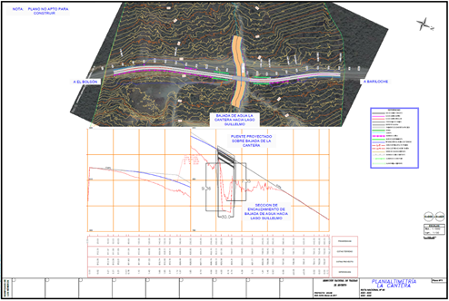 Se propone la construcción de un puente de 15 m de luz, con su tablero prácticamente a nivel de calzada actual. La fundación prevista será con pilotes para estar cubierto de la erosión. Será necesario excavar ladera adentro el cauce rocoso para evitar que los flujos caigan sobre la calzada (Figura 7 y Figura 8).