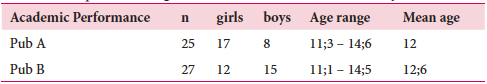 The data of the public school 6th graders were further analysed by contrasting two groups as above-average academic performance (Pub A) and below-average academic performance (Pub B), as informed by the school: