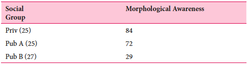 Pub 6thgraders in group B are able to assess grammatical knowledge pertaining to the standard variety by perceiving the missing plural 29% of the time (see table 4); however, they may not have fully developed sociolinguistic awareness of the fact that plural or zero morphemes are directly related to social context; thus, there is no linkage between grammatical and sociolinguistic knowledge, which necessarily affects the assessment regulated by the strategic component.