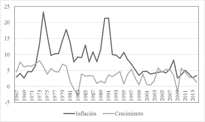 No obstante, estas políticas permitieron combatir problemas estructurales, como la inflación asociada a la sustitución del financiamiento de fuente externa tras la crisis de la deuda, lo que les brindó legitimidad. Por otra parte, ello no garantizó altas tasas de crecimiento, ni siquiera cercanas a las exhibidas por la región en los setenta (Figura 4).