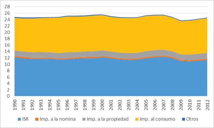 Por otra parte, se observa la dualidad de las políticas al hacer las reformas en función de los intereses del capital, sin considerar el interés general o, incluso, en detrimento de este. Se propició, por ejemplo, el incremento de los impuestos al consumo (i.e., IVA), medida de carácter regresivo, mientras que se redujeron los impuestos sobre la renta (ISR) (Castañeda, 2012), lo cual constituye una limitación del grado de progresividad y equidad vertical del sistema tributario. Dicha dualidad favoreció el crecimiento de la pobreza e inequidad a lo largo de los noventa en América Latina.