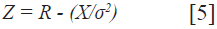 Donde Z es una variable que se distribuye de manera normal, R es el número total de rachas, X = (2n¡n2)/(n) + 1 (media de la serie), n1 representa el número total de rachas positivas, n2 el número total de rachas negativas, n=(n1+n2), σ 2=(2 n1n2(2 n1n2-n))/ ((n)2(n-1)) (varianza de la serie).