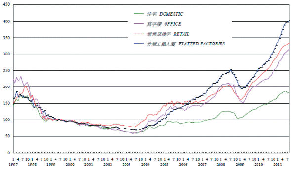All the evidence above appears to indicate massive inflows of "hot" capital into Hong Kong as a result of near-zero interest rates in US since the end of 2008. As interest rates in Hong Kong are parallel with those in US, with no expectations of Hong Kong dollar appreciating against the US dollar, it appears that these funds were not looking for higher yields but were aiming primarily at the booming property market, a sector highly sensitive to movements in interest rates. Hence, despite a slight dip in property prices in 2009 amidst the global recession, the housing prices have continued to rise through 2011, increasing even more rapidly than that preceding the recession (Figure 5).